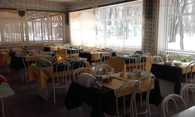 Питание отдыхающих осуществляется в столовой, находящейся на территории санатория, расположенной в отдельно стоящем здании.