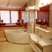 Лифт и сквозные прозрачные лестницы гостиницы, 6-метровые светильники и зеркальный водопад на ресепшн создают благоприятную атмосферу для отдыха после деловых переговоров или личных встреч.