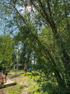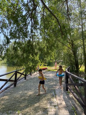 На территории базы отдыха вы найдете красивую и ухоженную территорию, чистый пляж, волейбольную площадку, беседки и мангалы.