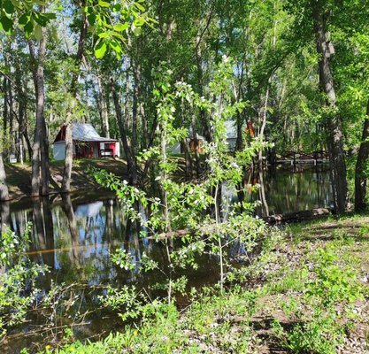 Сауна оборудована в восьмиместном доме на берегу водохранилища.