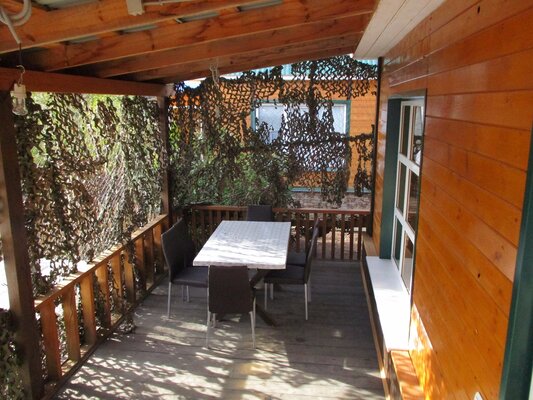 Традиционная русская баня из нового сруба к Вашим услугам! Имеется небольшое крыльцо с зоной отдыха и столом на свежем воздухе. Рядом с баней установлен мангал для самостоятельного приготовления еды.