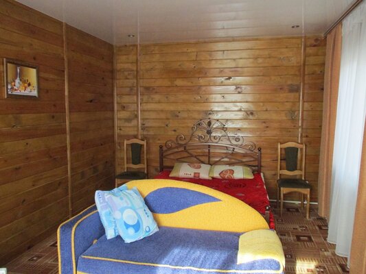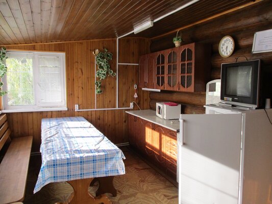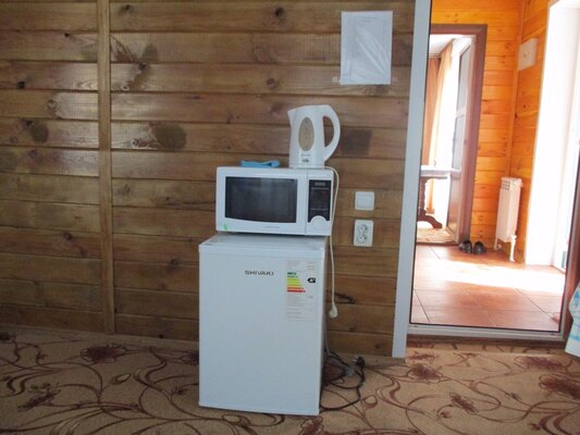 Для комфорта гостей предусмотрены удобные деревянные домики, полностью укомплектованные всем необходимым: мягкая мебель, бытовая техника (чайник, СВЧ-печь, телевизор), отдельный санузел с душем.