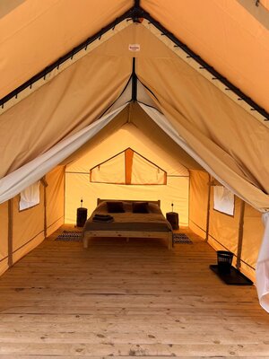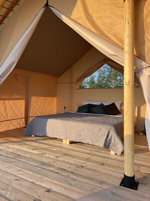 При необходимости возможно размещение с ребенком до 3х лет без предоставления дополнительного спального места, и с ребенком до 7 лет с предоставлением дополнительного спального места) в палатке «Сафари».