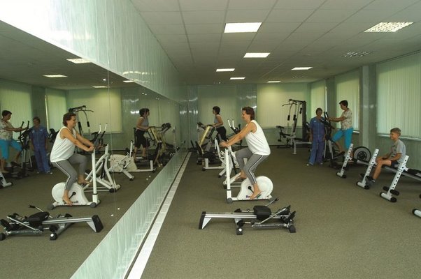 Для спортивных занятий в санатории предусмотрен зал лечебной физкультуры, где установлены 20 многофункциональных тренажеров.