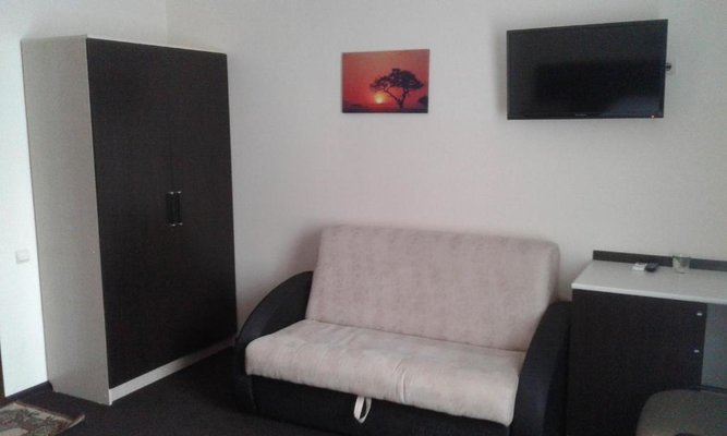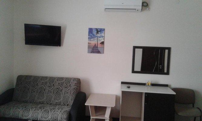 На 2х этажах современного здания расположены 15 номеров с удобствами(2х, 3х и 4х-местные). Номера оснащены всем необходимым для комфортного проживания: удобная и красивая мебель, ЖК-телевизор (кабельное ТВ), сплит-система, холодильник, душ(горячая-холодная вода), санузел + сушилка для белья, банные полотенца. Уборка номеров осуществляется ежедневно.