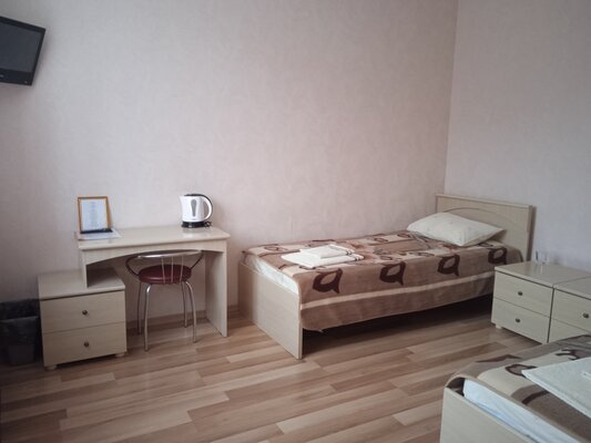 Отель занимает первый и второй этажи четырехэтажного здания на улице Советской, предлагая 24 номера различного уровня комфорта. В зависимости от категории, комнаты оснащены телевизором, холодильником и чайником; номера комфорт-класса дополнительно оборудованы кондиционером. Доступны номера как с индивидуальными санузлами и душем, так и с общими удобствами на этаже или в блоке.
