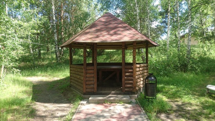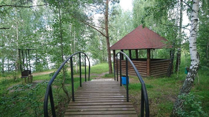 Беседка расположена на солнечном холме. К ней имеется отдельный подъезд на автомобиле. Рядом есть мангал, тринога, умывальник и лавочки. Отдельный пирс для рыбалки.
