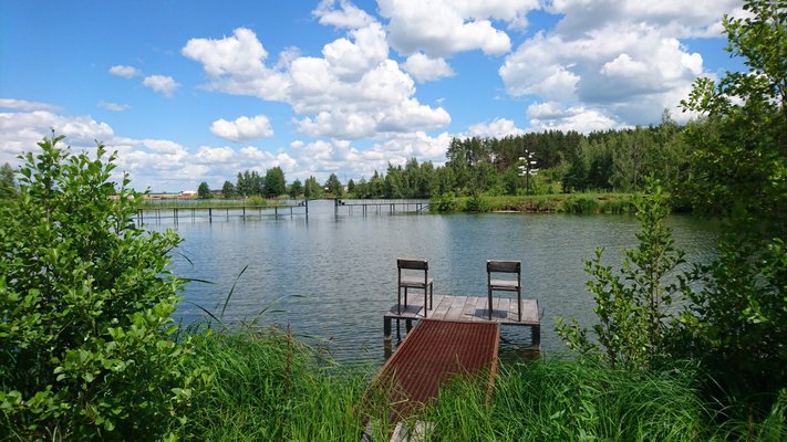 Беседки расположены на противоположном берегу от центрального входа. К каждой из беседок возможно подъехать на автомобиле. Недалеко от беседок расположена ферма с различными животными: дикие кролики, перепела, овечки, курочки и пр.