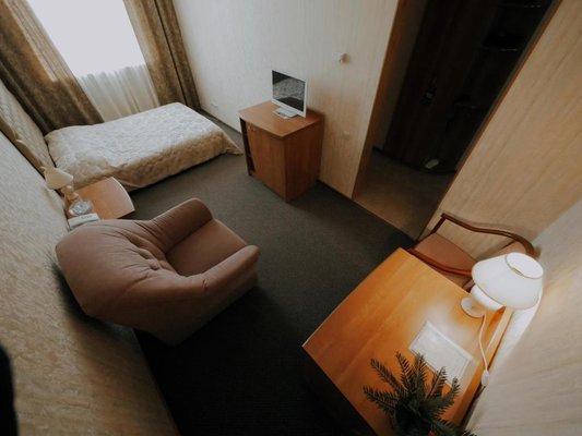 Кроме того, в отеле работает сауна с современным оборудованием, позволяющая выбрать комфортный режим парения для каждого гостя, практически без противопоказаний.