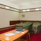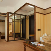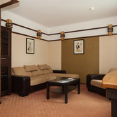 Уютный зал на 8 посадочных мест. Прекрасное место, чтобы уединиться в небольшой компании в обстановке достойной роскоши. Переговоры, небольшая вечеринка «для своих», романтический ужин… Классический интерьер в лучших традициях стиля. Изюминка — сквозной аквариум с экзотическими рыбами и растениями.