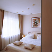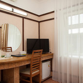 В распоряжении гостей имеется 38 современных уютных номеров различных категорий, оформленных в приятных светлых тонах и оснащенных удобной и практичной мебелью. Архитектура корпусов отеля представлена в воздухо-проницаемых фасадах, гармонично сочетающих темный орех и серебристый алюминий.