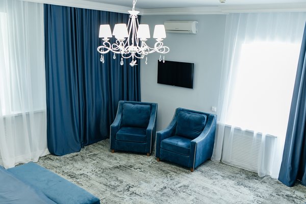 Номера выполнены в современном стиле, цветовая гамма — выдержанные пастельные тона. Оснащены всем необходимым для комфортного пребывания: индивидуальным санузлом, кондиционером, бытовой техникой и даже кофемашиной.