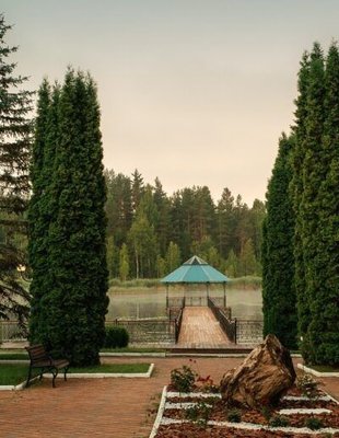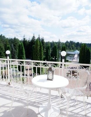 На первом этаже работает ресторан с банкетным залом в дворцовом стиле вместимостью 110 человек. На территории установлены беседки и скамьи. В качестве услуг доступна аренда катамаранов и лодок для прогулки по озеру. Администрация отеля регулярно организует рыбалки.