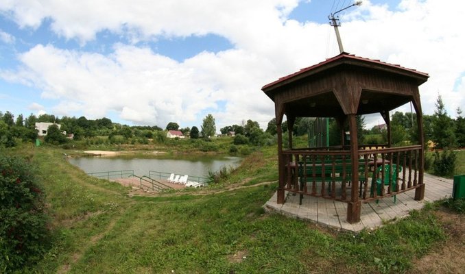- пруд с пляжем, где вы сможете поплавать, позагорать и порыбачить;