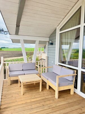 Внутри есть: обогреватель, москитные сетки, балкон (терраса), душ с принадлежностями, фен, чайник и чай.