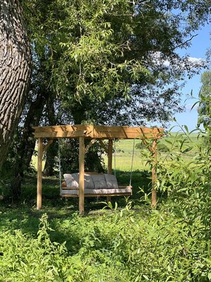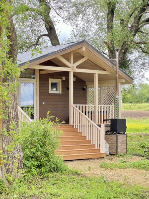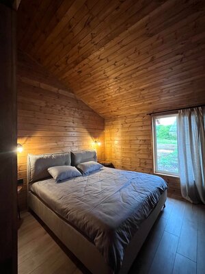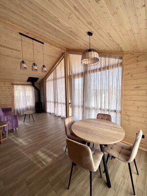 Отдельный домик с русской баней и небольшой зоной отдыха. Расположен на берегу речки. Располагает открытой террасой с купелью.