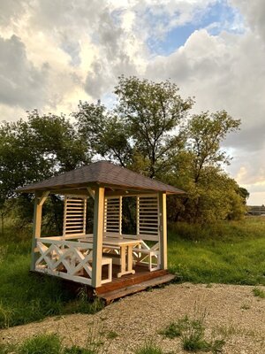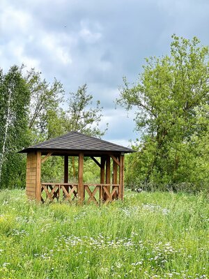 - беседка №1 (9 м2, до 8 чел.) — 5000 ₽ / 500 ₽;