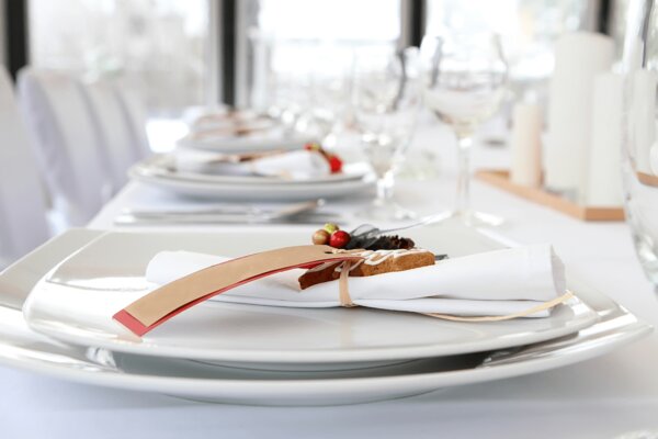 *Базовая сервировка: тарелка, вилка, нож, бокал/рюмка/стакан. Стоимость полной сервировки — 400 ₽ с человека.