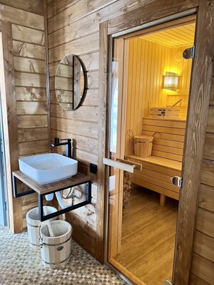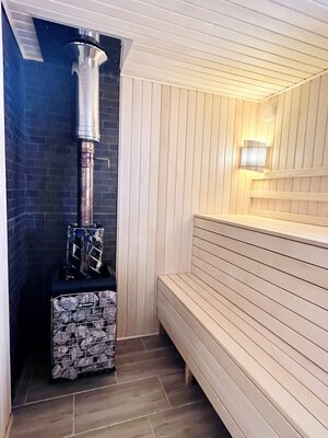 В бане есть отдельная комната с топкой, где можно посидеть и попить ароматный чай. В стоимость входит пользование полотенцами и одноразовыми тапочками, травяной чай, эфирное масло.