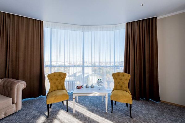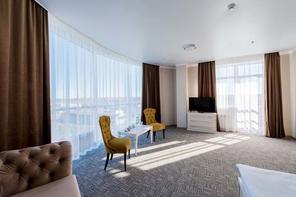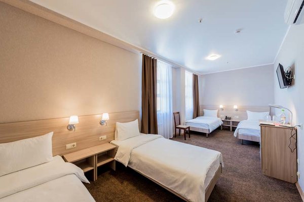Для размещения доступны номера категорий «стандарт», «супериор», «полулюкс» и «люкс». Все номера оформлены в приятной цветовой гамме, укомплектованы новой мебелью и современной техникой. В каждом из них имеются удобные кровати, рабочий стол, шкаф для одежды, телевизор с плоским экраном, телефон, индивидуальная система кондиционирования. Собственный санузел оснащен стандартным набором сантехники, феном и гигиеническими принадлежностями. Для поддержания чистоты проводится ежедневная уборка.