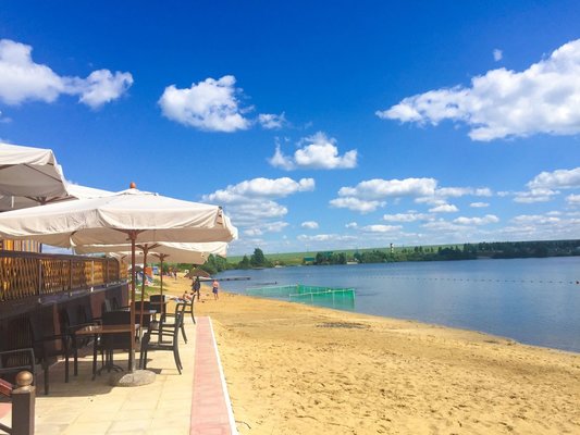 Инфраструктура: деревянные домики с верандой, домики на колёсах, охраняемая стоянка для автомобилей, кафе «Бригантина», три бани с дорожками к пруду, беседки для отдыха, песчаный пляж, тир, загон с животными, конные прогулки, площадка для пляжного волейбола, две площадки для футбола, пункт проката.