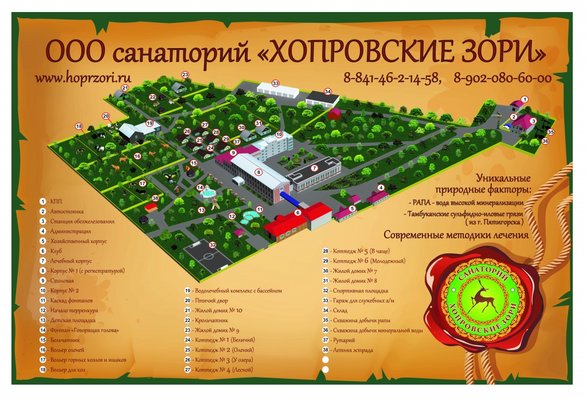 Рапа – главное богатство и гордость санатория «Хопровские зори». Это то, что отличает санаторий от остальных здравниц. Характеризуется вода как йодо-бромная, рассольная минеральная вода хлоридного кальциево-натриевого состава с повышенным содержанием органических веществ, ионов железа и борной кислоты. Ее использование позволяет достичь максимального эффекта при лечении широкого спектра заболеваний.