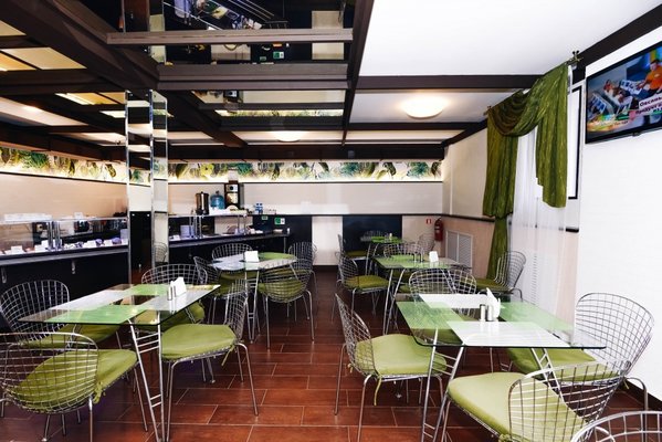 На территории отеля работает кафе-столовая, на базе которой ежедневно сервируют завтраки в формате «шведский стол» и бизнес-ланчи.