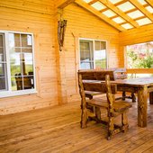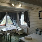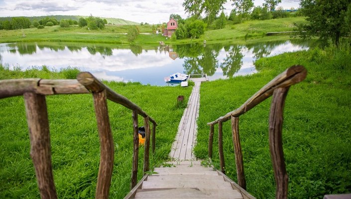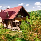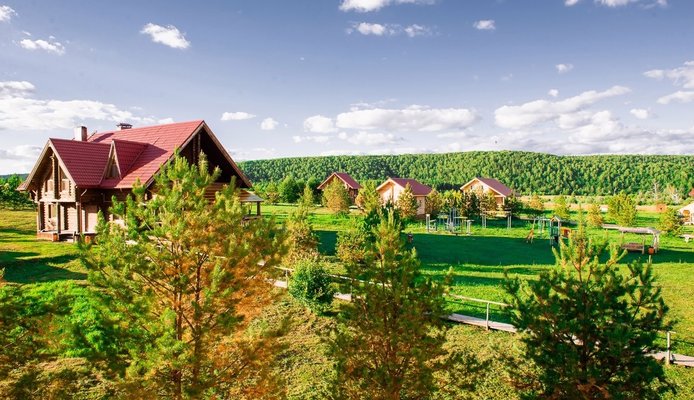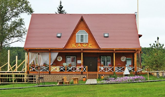 На территории есть уютные коттеджи со всеми удобствами для больших и маленьких компаний, шикарная русская баня на дровах, водоем, по которому можно прокатиться на катамаране и порыбачить, все для активного отдыха(велосипеды, волейбольная и футбольная площадка, настольный теннис, бильярд, зимой катание на санях и сноубордах). А так же в вашем распоряжении кафе со вкуснейшем меню от шеф-повара.