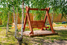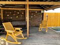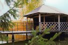 Расположенная прямо над водой беседка является прекрасным местом для семейного досуга или встреч с друзьями. Внутри имеется стол, деревянные лавочки и пара кресел-качалок. Неподалеку оборудована площадка для приготовления блюд на мангале.