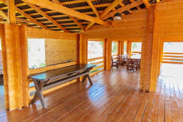 База отдыха «Доброfish» предлагает прекрасную летнюю беседку, вмещающую до семидесяти человек, идеально подходящую для больших компаний. Здесь предусмотрены деревянные столы и стулья, а также зона для танцев со светомузыкой, создающей атмосферу праздника.