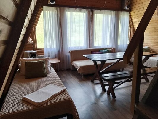 Дополните свой отдых арендой традиционной бани, экзотического сибирского чана или обустроенной мангальной зоны – всё для шашлыка можно приобрести прямо на месте. Для активного досуга доступен прокат спортивного оборудования. Завершите день вкусным ужином в уютном кафе с камином и панорамным видом на лес и горы, где можно заказать комплексное питание.