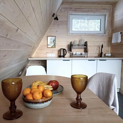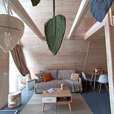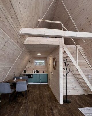 Для проживания гостей подготовлены экологически чистые деревянные дома, полностью оборудованные всем необходимым и отапливаемые, что позволяет принимать отдыхающих круглый год. К вашим услугам: 3 уютных скандинавских домика, просторный коттедж на 7 человек, вместительные апартаменты для 10 гостей и комфортные двухместные домики.