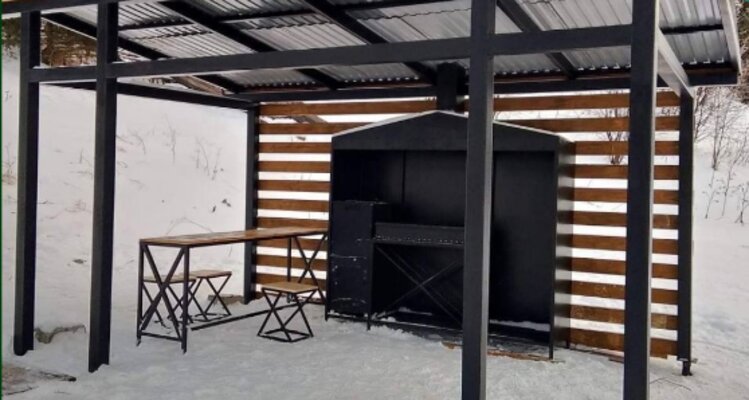 Мангальная зона со столом и коптильней