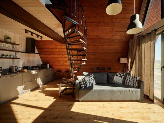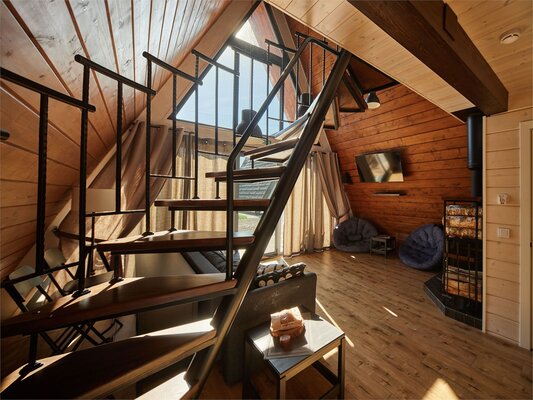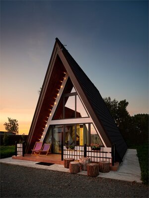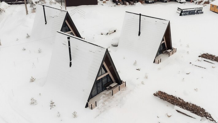 - дома A-Frame: современные и просторные дома с каминами, панорамными окнами с видом на залив и эксклюзивным дизайном;