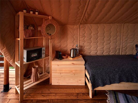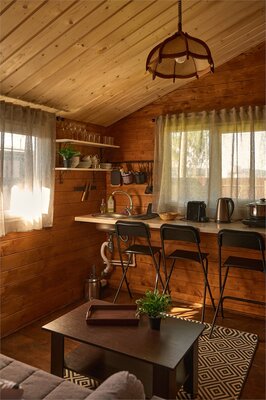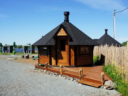 Два удобных, уютных, теплых гриль-домика расположены в глэмпинге — это отличное место, где вам будет тепло, комфортно и уютно.