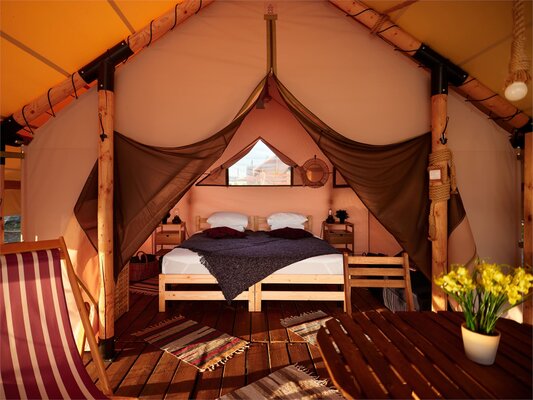 - сафари-тенты в лесу: уют и близость к природе под сенью пышной зелени;