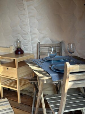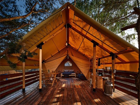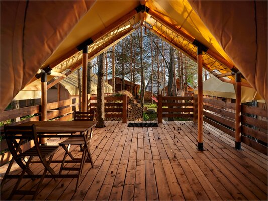 Мы рекомендуем арендовать пати-тент вместе с сафари-тентами и гостевым домом, расположенными в лесной зоне.