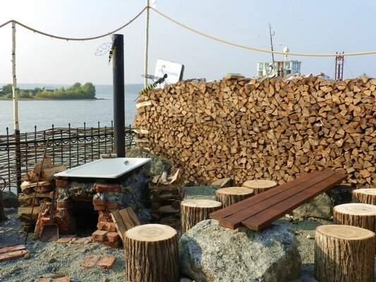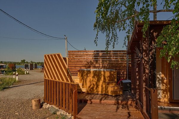 Ванна под открытым небом, отапливаемая дровами, представляет собой уникальное место для релаксации и отдыха. Ее особенностью является возможность принимать ванну на свежем воздухе при любой погоде. Преимуществом также является, открывающийся вид на реку.