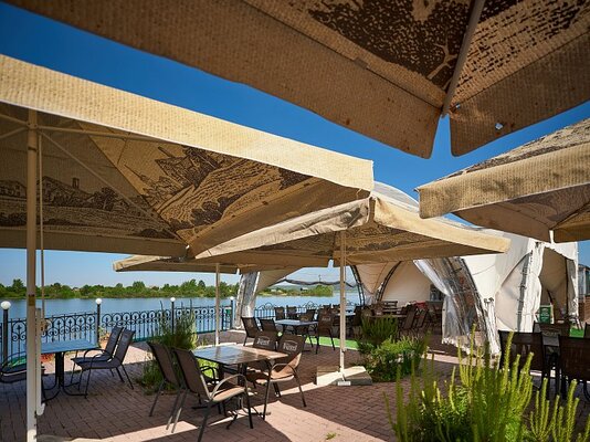 Шатер на 50 человек, 100 кв. м с открытой террасой. Красивая зона для фотосессий. Есть оборудованная летняя кухня, индукционная плита, посуда, микроволновая печь, холодильник.