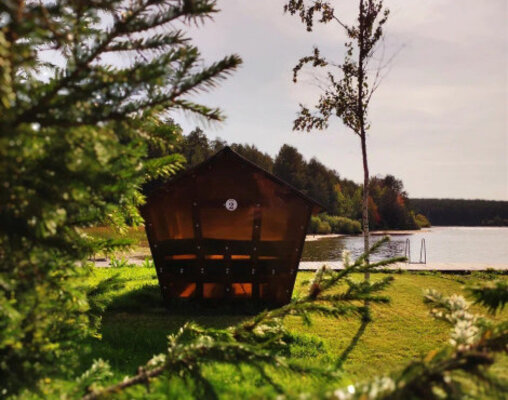 Банный комплекс в лесной части базы на берегу реки Кама.