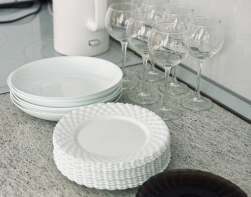 - кухонный гарнитур (минимальный набор посуды);