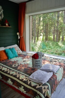 Для полноценного релакса можно арендовать баню, сауну или банный чан. Особой изюминкой станет отдых в костровой зоне под открытым небом в виде вигвама — уникальный формат отдыха, который доступен только в глэмпинге «Тишина».
