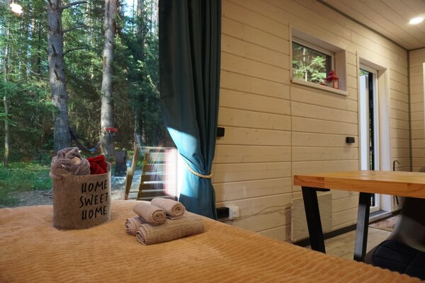 Каждый домик полностью укомплектован для комфортного проживания: собственная кухня, удобные спальные места, санузел и просторная терраса с видом на лес. В этом уголке дикой природы вы сможете полностью расслабиться, наполниться энергией и насладиться тишиной, окружённой шелестом листвы и ароматами хвойных деревьев.