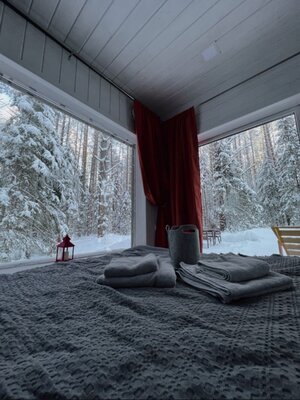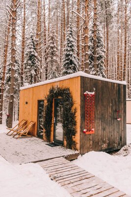 Настоящая русская банька на дровах с панорамным видом на сосновый бор. Вместимость до 4-х человек.