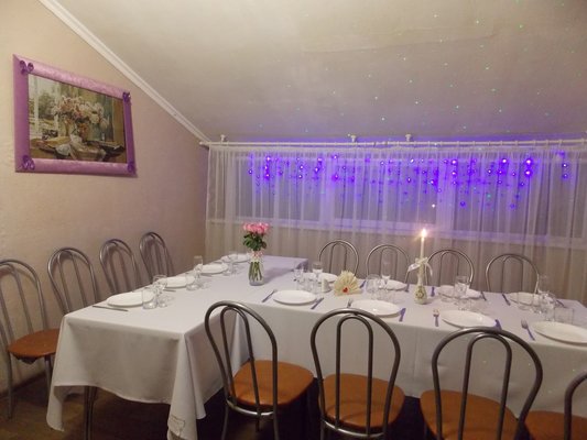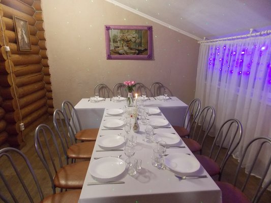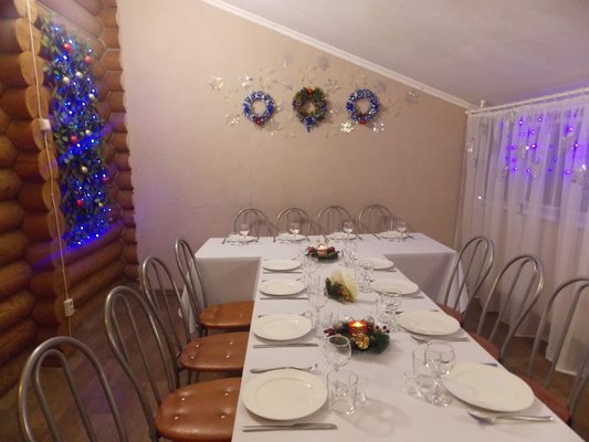 Банкетный зал на 20 персон (отдельно стоящее здание: кухонное помещение, звуковое/световое оборудование, скатерти, банкетная посуда, сан. узел). Банкетное меню, с учетом Ваших вкусовых предпочтений.