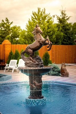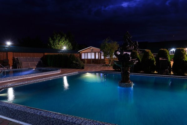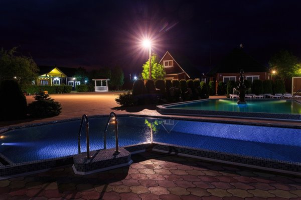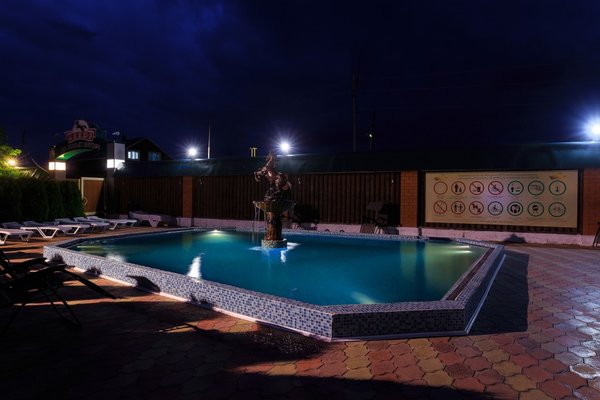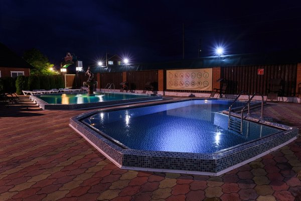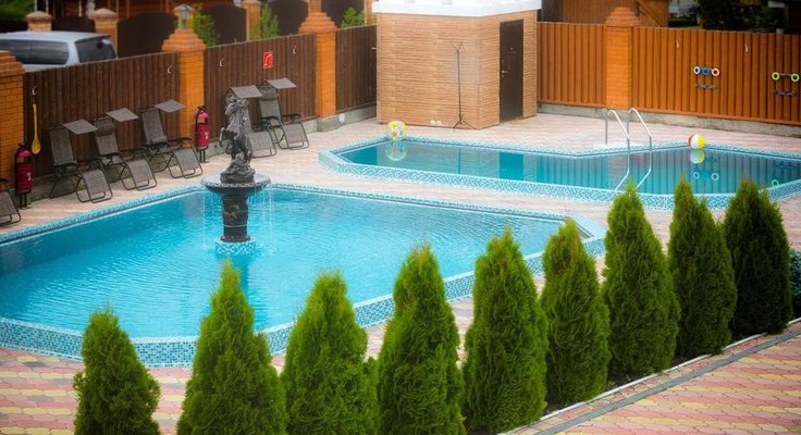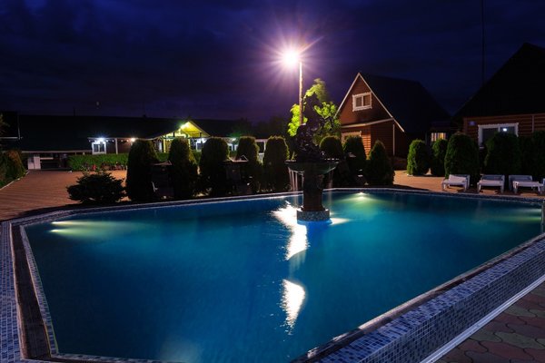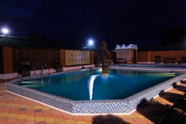 Для любителей водных процедур оборудован большой открытый бассейн. А для маленьких гостей комплекса работает большая игровая площадка на свежем воздухе. Дети могут покататься на сигвее, попрыгать на батуте и посетить парк африканских страусов.