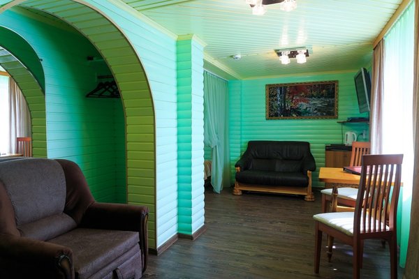 На территории комплекса работает кафе, где можно насладиться блюдами домашней кухни. Для любителей активного отдыха оборудована мангальная зона, где можно приготовить шашлыки и провести время на свежем воздухе.