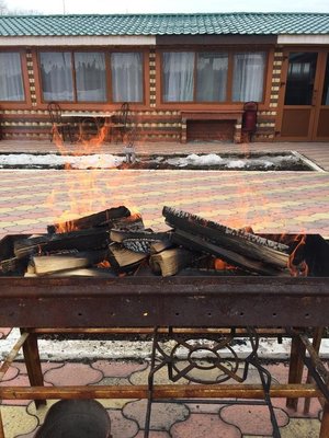 - Стеклянный зал, мангал, караоке, колонка для флешки.