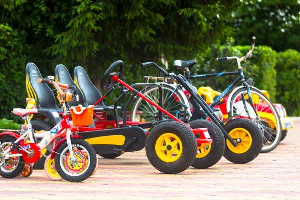 Инвентарь: мяч футбольный, волейбольный, канат, ходули, обручи, детские велосипеды.