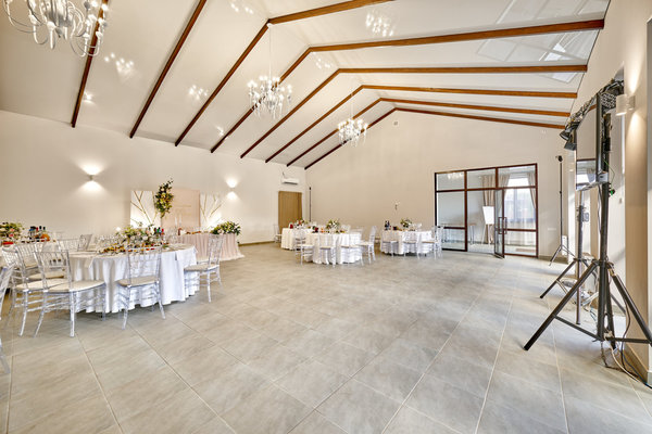 Просторный светлый банкетный зал 130 кв.м. с панорамными окнами вмещает в себя до 70 гостей. В зимний период в зале тепло, предусмотрено отопление. Аренда зала включает в себя банкетную мебель столы и стулья, гардероб, гримерную комнату, 3 уборные. По меню, на выбор, мы предлагаем европейскую и азиатскую кухни.